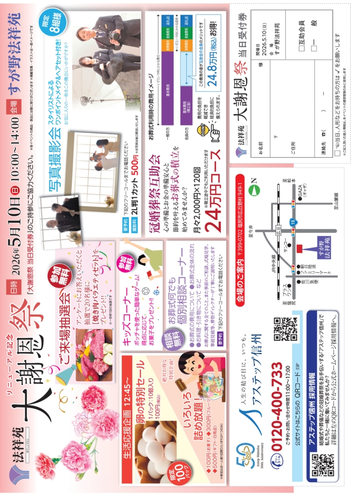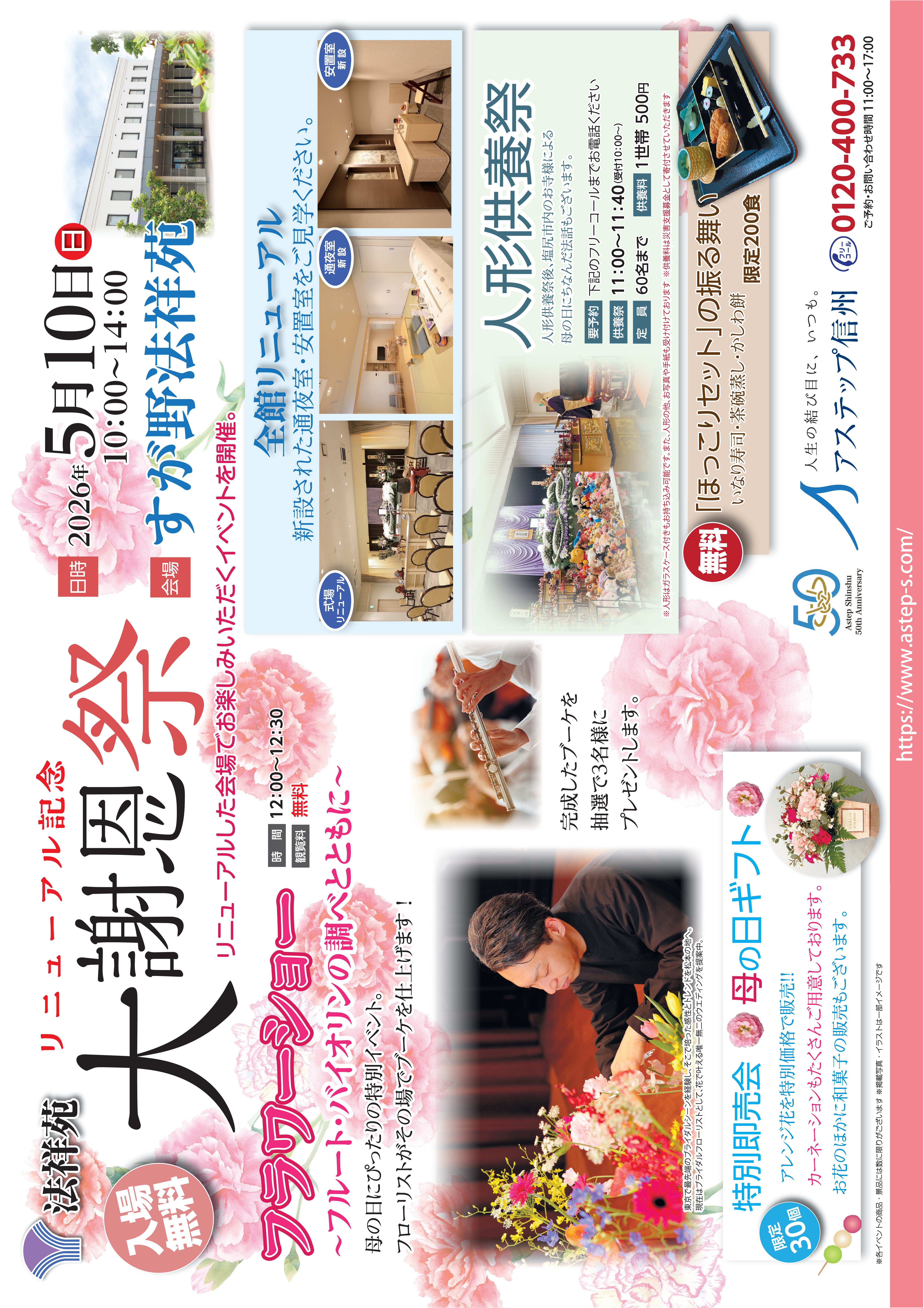 2026.5.10<リニューアル記念>すが野法祥苑 大謝恩祭開催のお知らせ